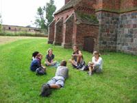 Wykop drugi. A nie zgubicie czegoś podczas przesiewania? - pytam nieśmiało. To niemożliwe - odpowiada dziewczyna z hałdy. Cenny fragment ceramiki ląduje w plastikowym koszu. Pan Wiesiek podaje znaleziony ułamek kości (chyba ludzkiej). Hałda nie jest nieuporządkowaną kupą ziemi i gruzu. Jest podzielona na warstwy - wyraźnie oddzielone terasy. W ogóle zauważam panujący na wykopaliskach porządek. Wszystko jest czynione według wyraźnych zasad, gruz, kamienie, cegły i ziemia - usypane w oddzielne hałdy. Każdy zna swoje miejsce. To chyba jednak nie przypomina poszukiwania skarbu templariuszy!
